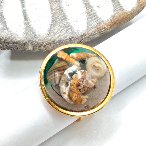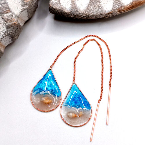 Colgante artesanal con arena y ola azul – joya única de la costa gallega